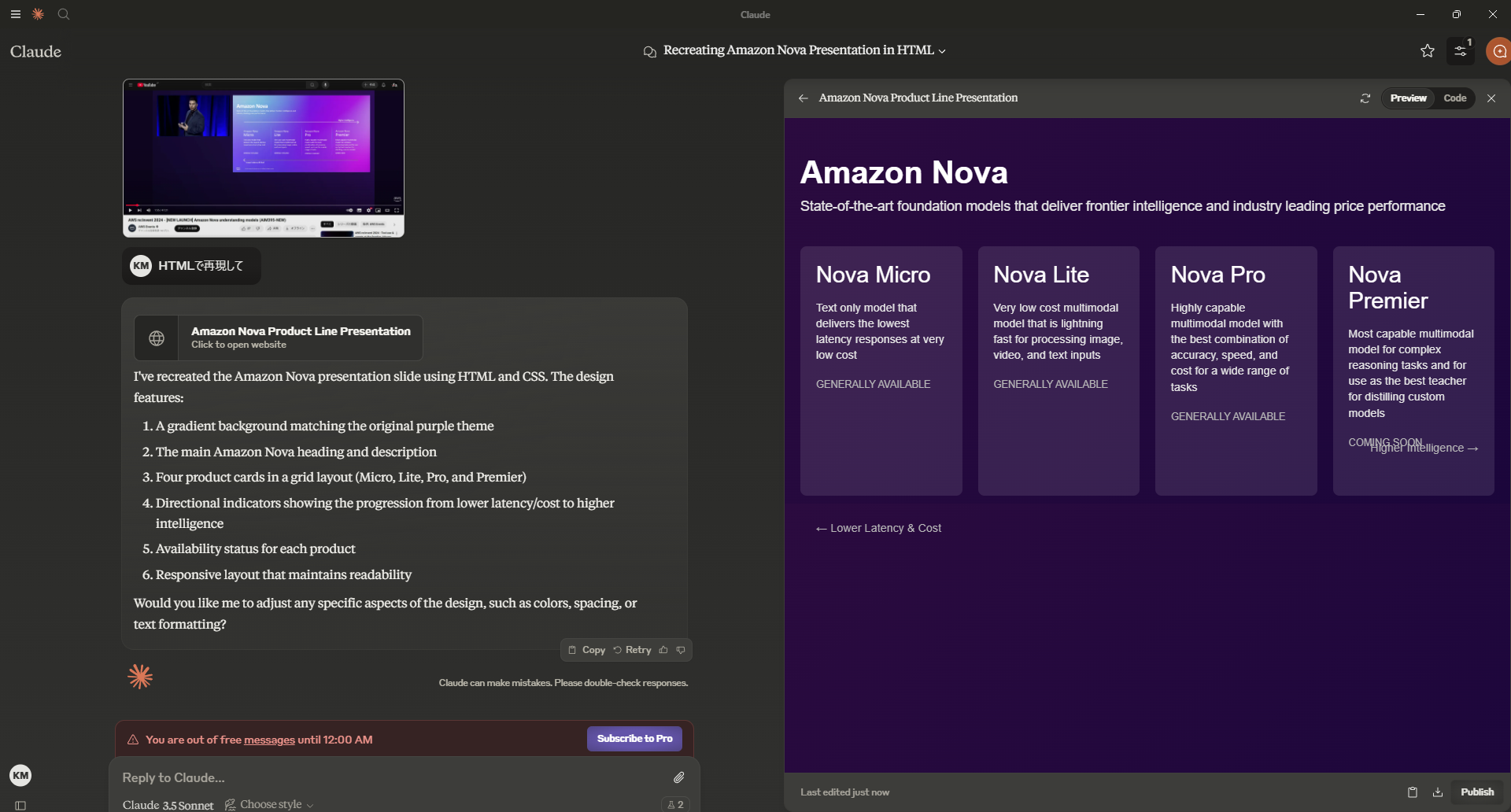 (注:右側が画像をもとに生成したHTMLを、プレビューした状態です。Claude.aiのArtifactsという機能です)