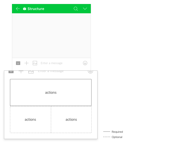 LINE WORKS の Bot には、リッチメニュー と呼ばれる、画像上の任意の領域にアクションを設定可能な、自由度の高いメニューを割り当てることができます。