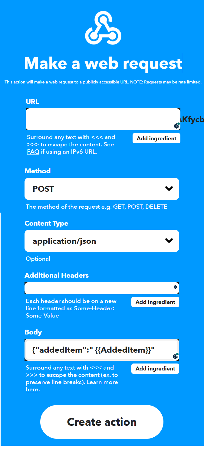 GASで受け取る準備ができたので、IFTTTの設定をしていきます。