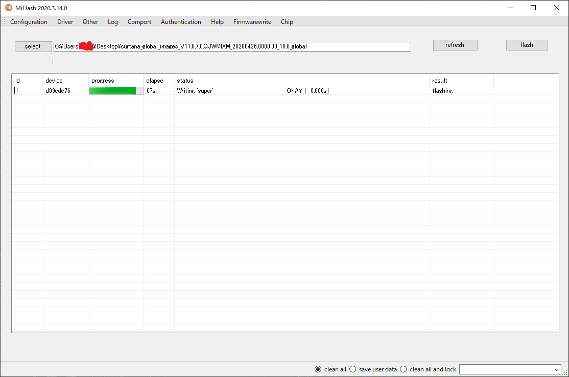 fastboot flash recovery .\twrp_curtana.imgを実行 -