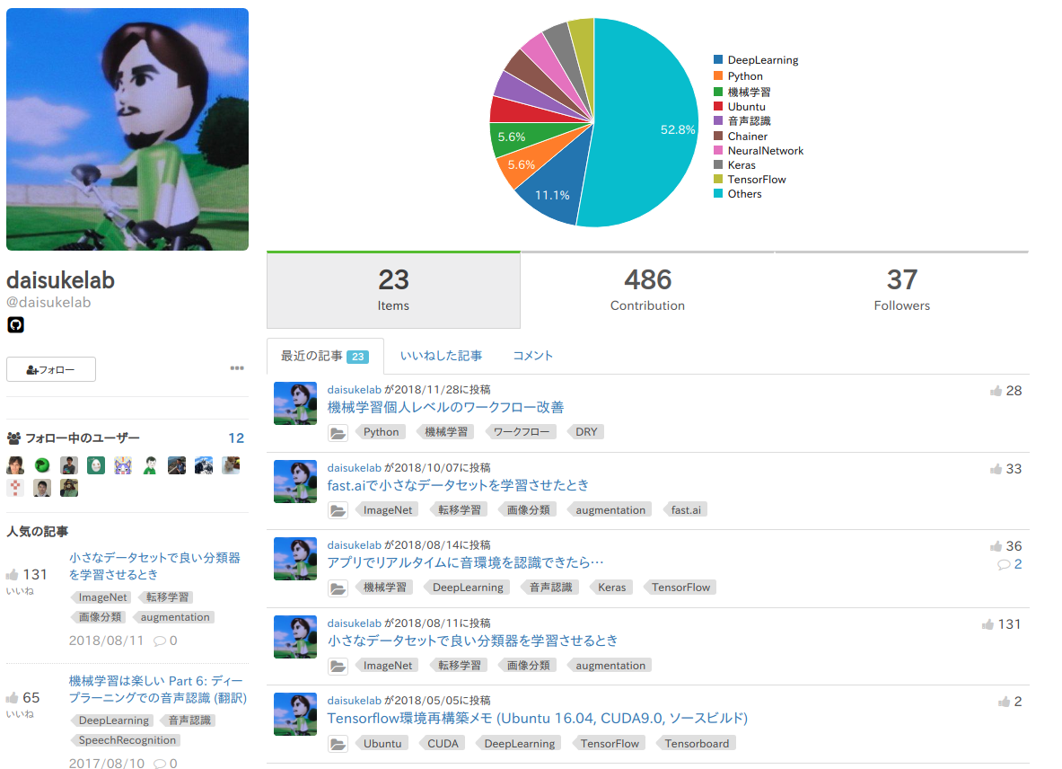 - コードを考慮した学習: 埋め込まれているコードの部分も使えたらQiitaっぽくて良い。せめて言語の種類ぐらいは埋め込みたい、技術記事の分析とかで先行事例あれば知りたい。