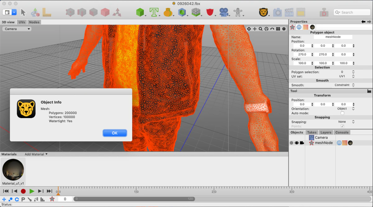 モデルデータをFBXでダウンロードして手持ちの3Dツール、Cheetah 3Dで確認したところ、ポリゴン数は20万でした。