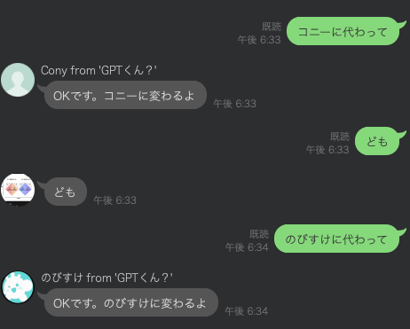 割と楽しいですね、一人何役かを裏でやれてグループ内とかで複数の役割をBOTに持たせたり出来そうです。