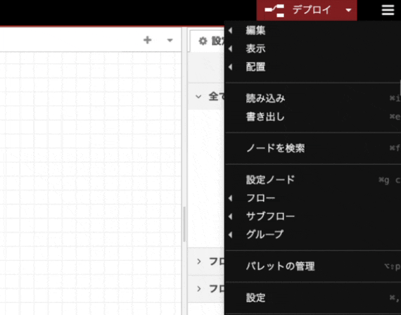 右上のメニューの設定ノードから現在存在する設定ノードを確認できます。