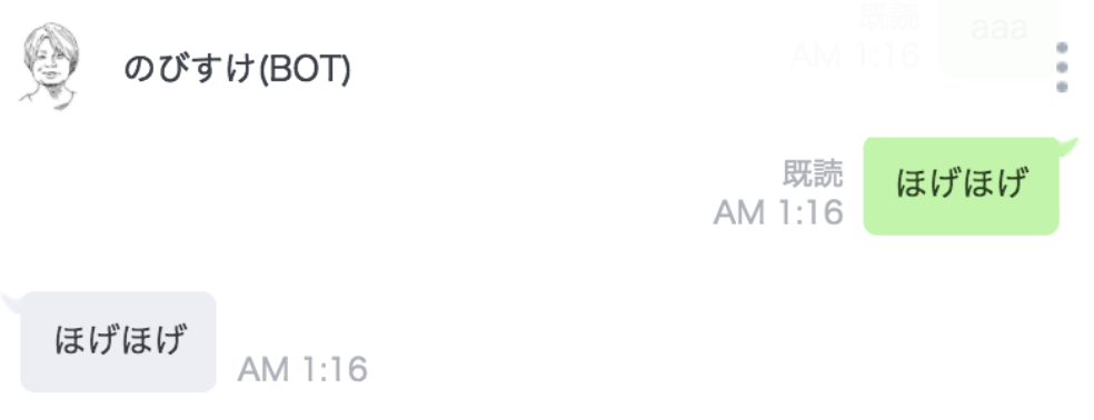 ここまでで問題がなければ、おうむ返しBOTが出来てると思います。