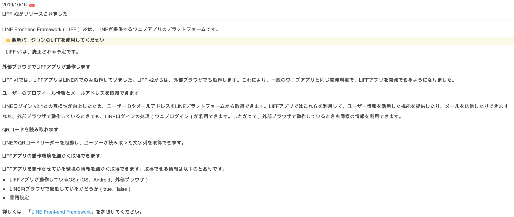 目玉機能はLINEログインとQRスキャンだと思うのですが、個人的には外部ブラウザでLIFFの活用が出来るようになったというところだと思ってます。