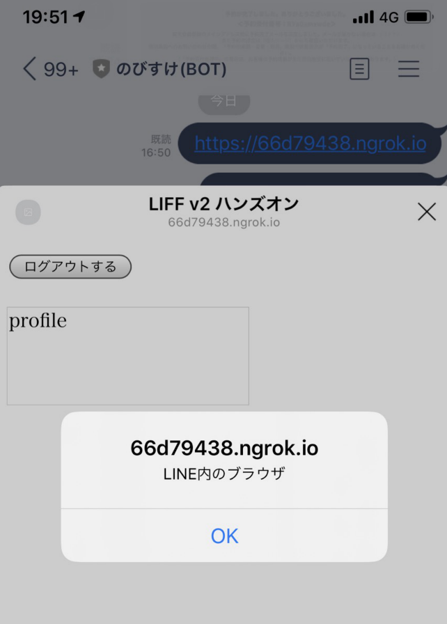 まずは外部ブラウザでの挙動とLINEログインを試していきます。