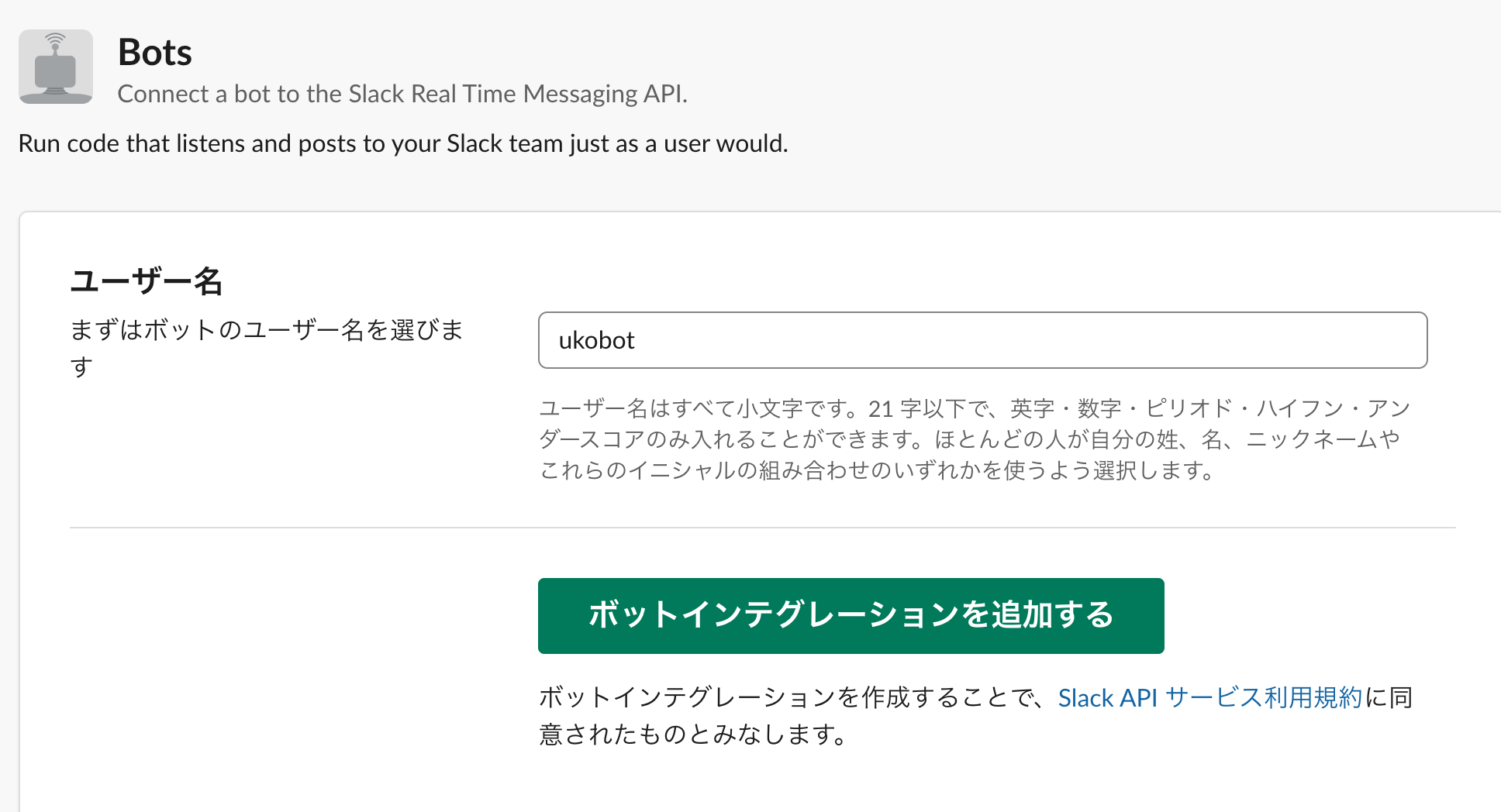 Slack BOTを作成