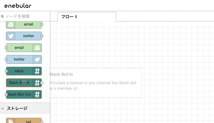 Slack BoT Inノードを追加します。