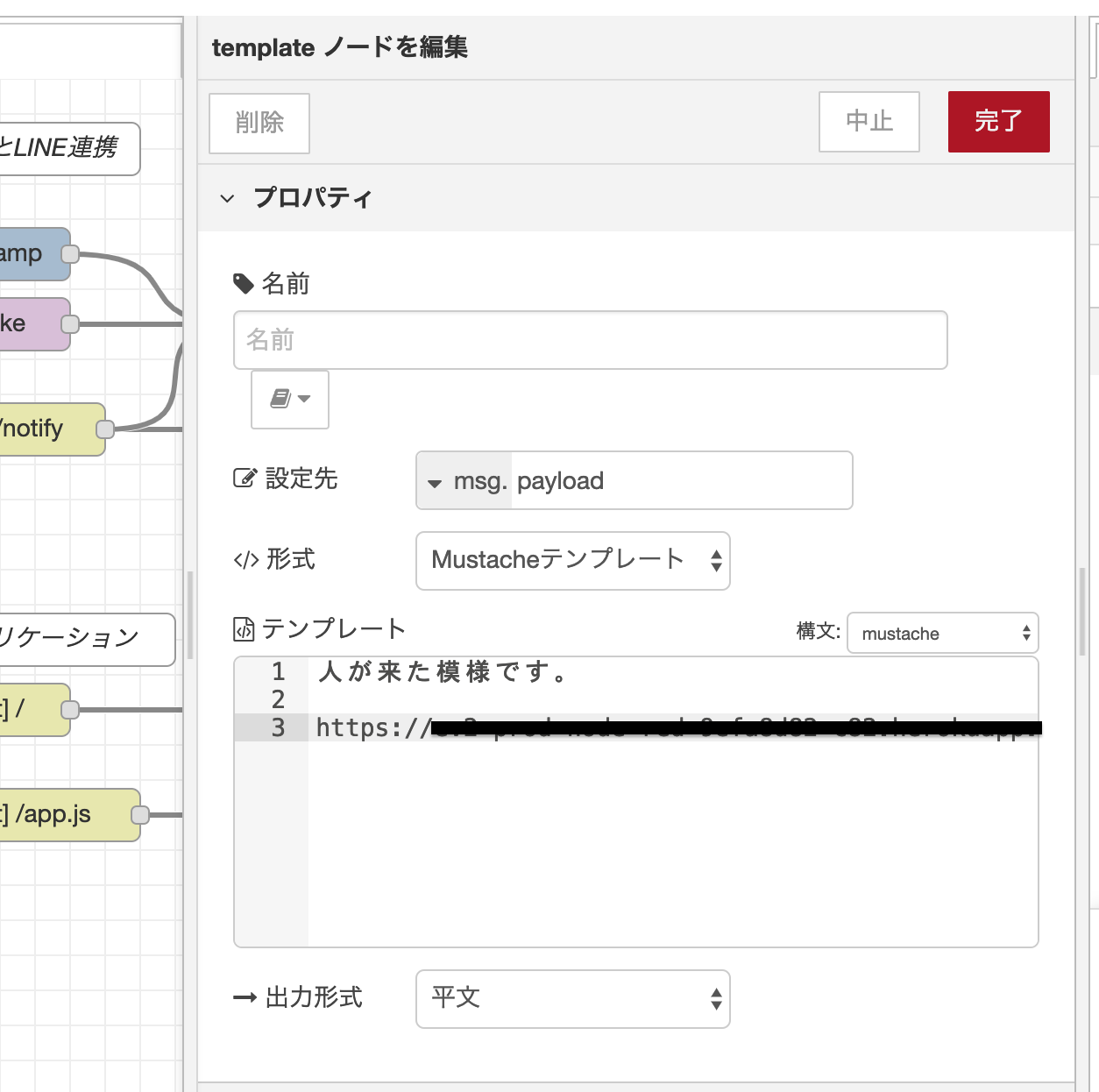 - 完了したらinjectノードの横のボタンを押すとLINEに通知されます。