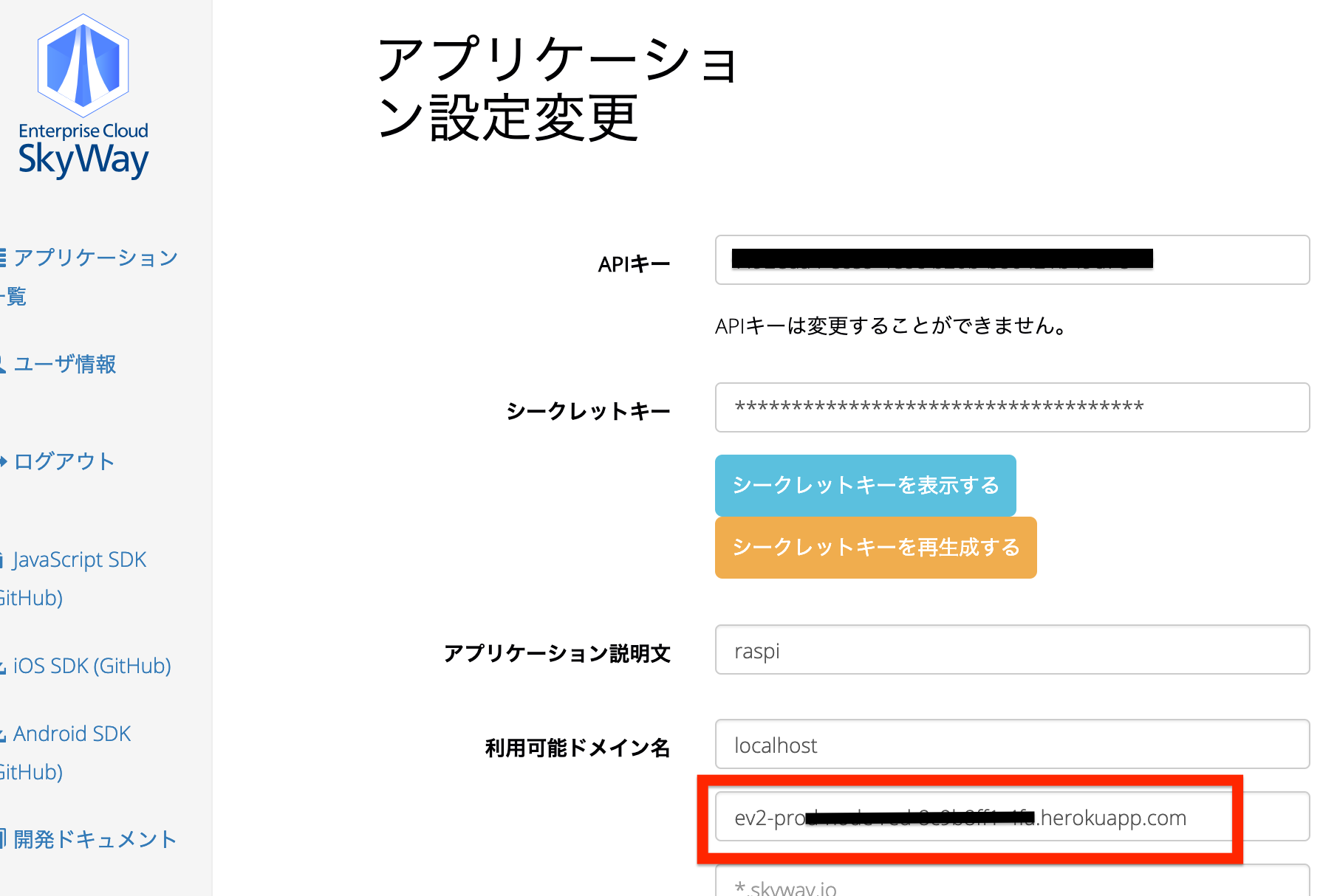 - SkyWayにenebularのデプロイ後URLを登録する必要があるので登録しましょう。SkyWayのコンソールから設定して更新します。