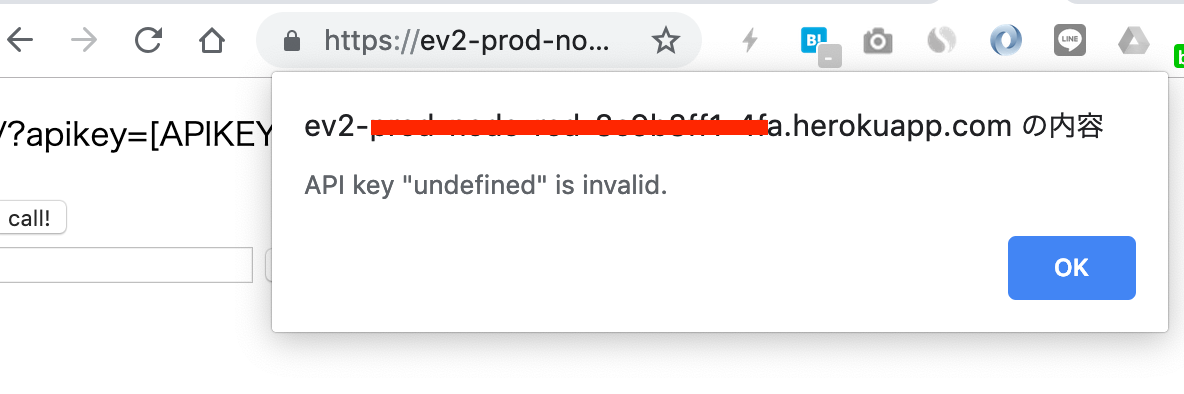 URL+/?apikey=xxxxx&peerid=xxxxxxという形式でアクセスしなおしてみましょう。apikeyはSkyWayのAPI KEYです。今度はThe domain~というアラートが出ると思います。