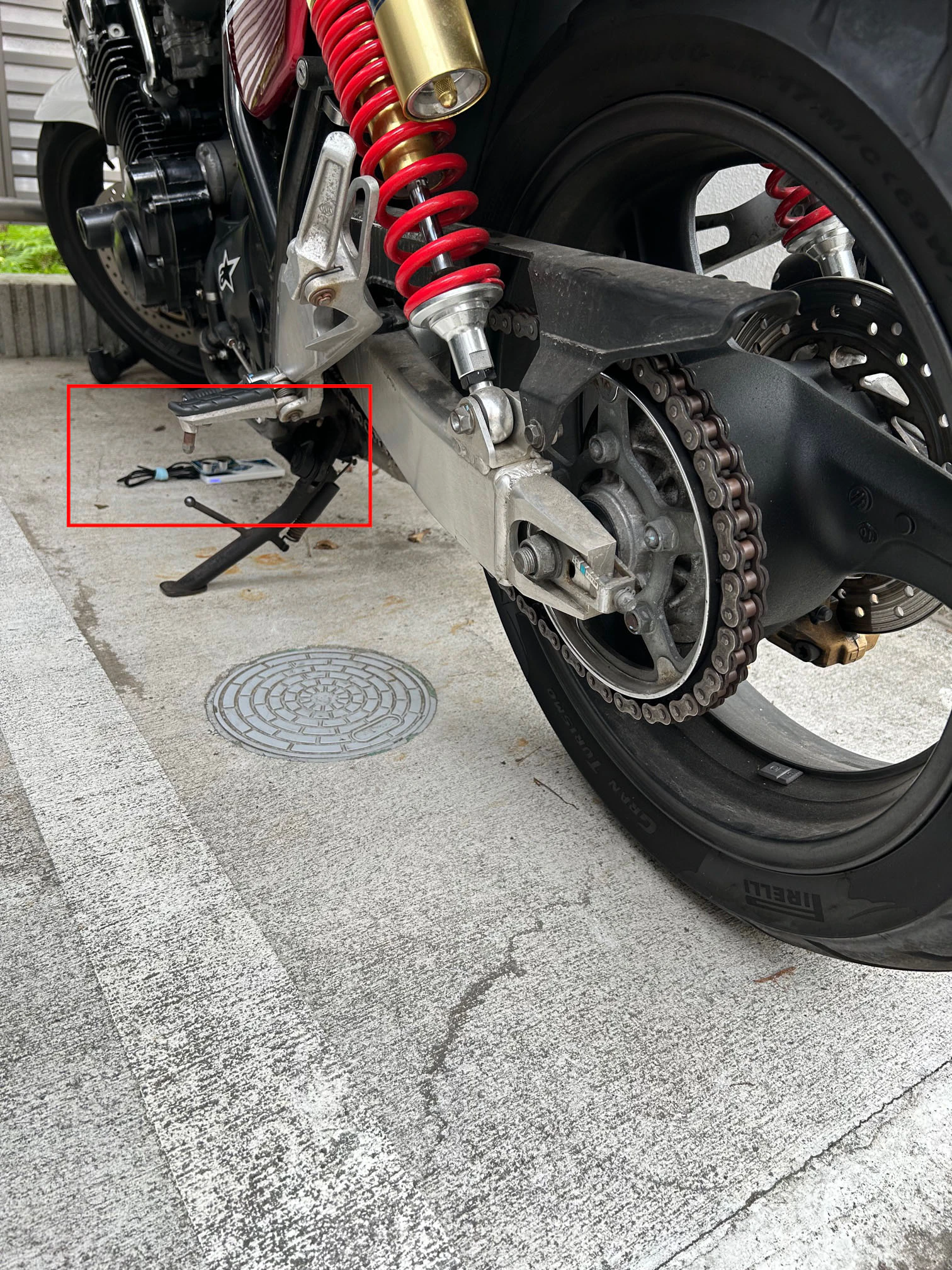 バイク下に設置した。