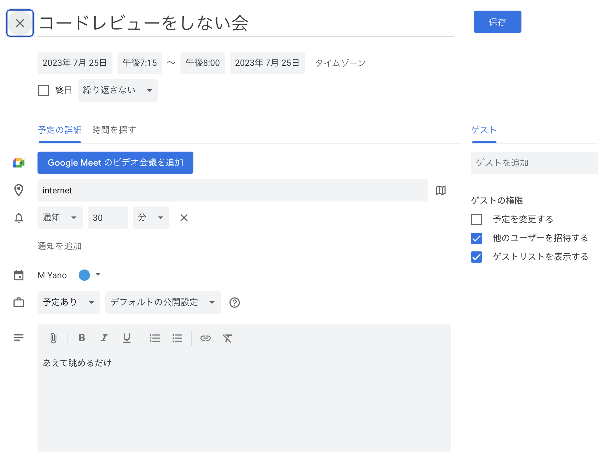 - ブラウザで上記URLを貼るとGoogle Calenderのイベント登録画面が開き入力した内容が自動で反映される