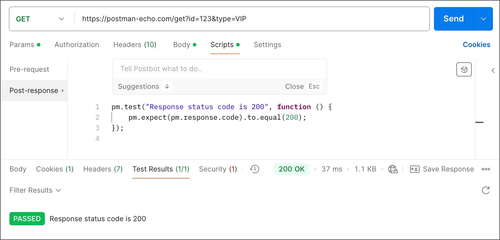 pm.expect(pm.response.responseTime).to.be.below(200);
