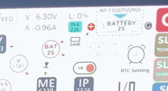 - 外部電源で動作中は、電流(A)は マイナス値となって(電流の流れる向きが反転して)、バッテリー充電中の 電圧 と 電流 が表示されます