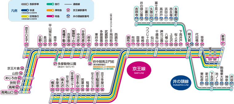 京王線に乗る機会がありました。そのときに駅にあった案内板の路線図をみました。