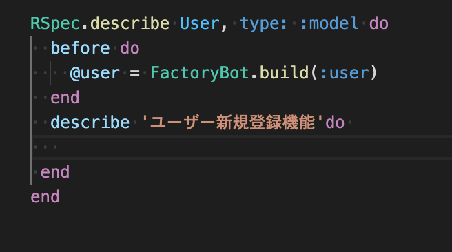 descibeとはテストコードのグループ分けを行うメソッドのことです。