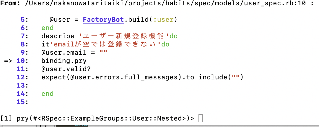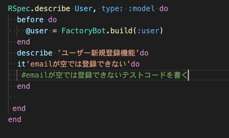 前提として、RSpec,FactoryBotの導入は済んでいる。