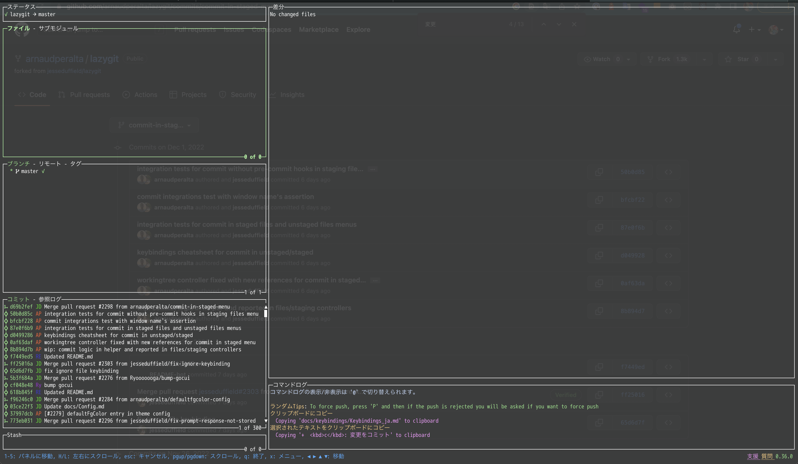 gitのTUIといえば、tig、lazygit、最近ではrust製のgituiが有名どころかと思いますが、golang、スター数、twitterでの評判、汎用猿型飯テロ決戦兵器 人造類人猿ゴリラゲリオンさん推し(@gorilla0513)ということでlazygitを使ってみたいと思います。