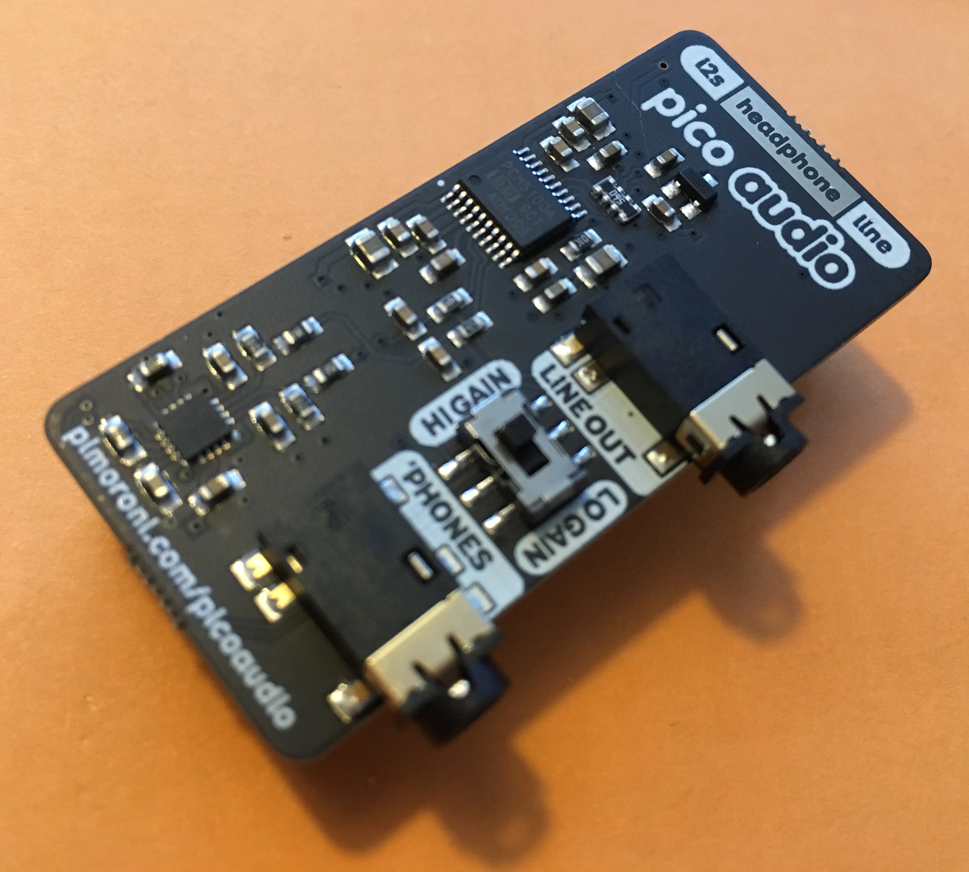 I2S接続のDACはバーブラウンのPCM5100A採用、ライン出力とヘッドフォンアンプ(PAM8908)出力あり。音的には、Pirate Audio Headphone Amp for Raspberry Piと同じ部品構成ですね。ちなみに、このボードだけ、MicroPythonのサポート予定がない。C/C++のみ。