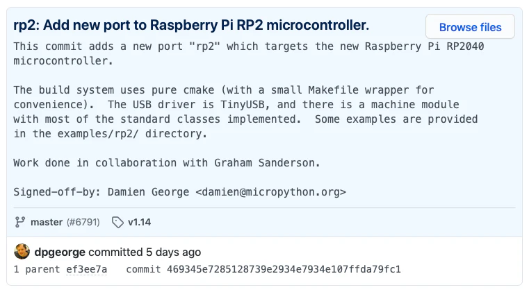 RP2用のMicroPython v1.14が公式リポジトリに入った瞬間 2021-01-29