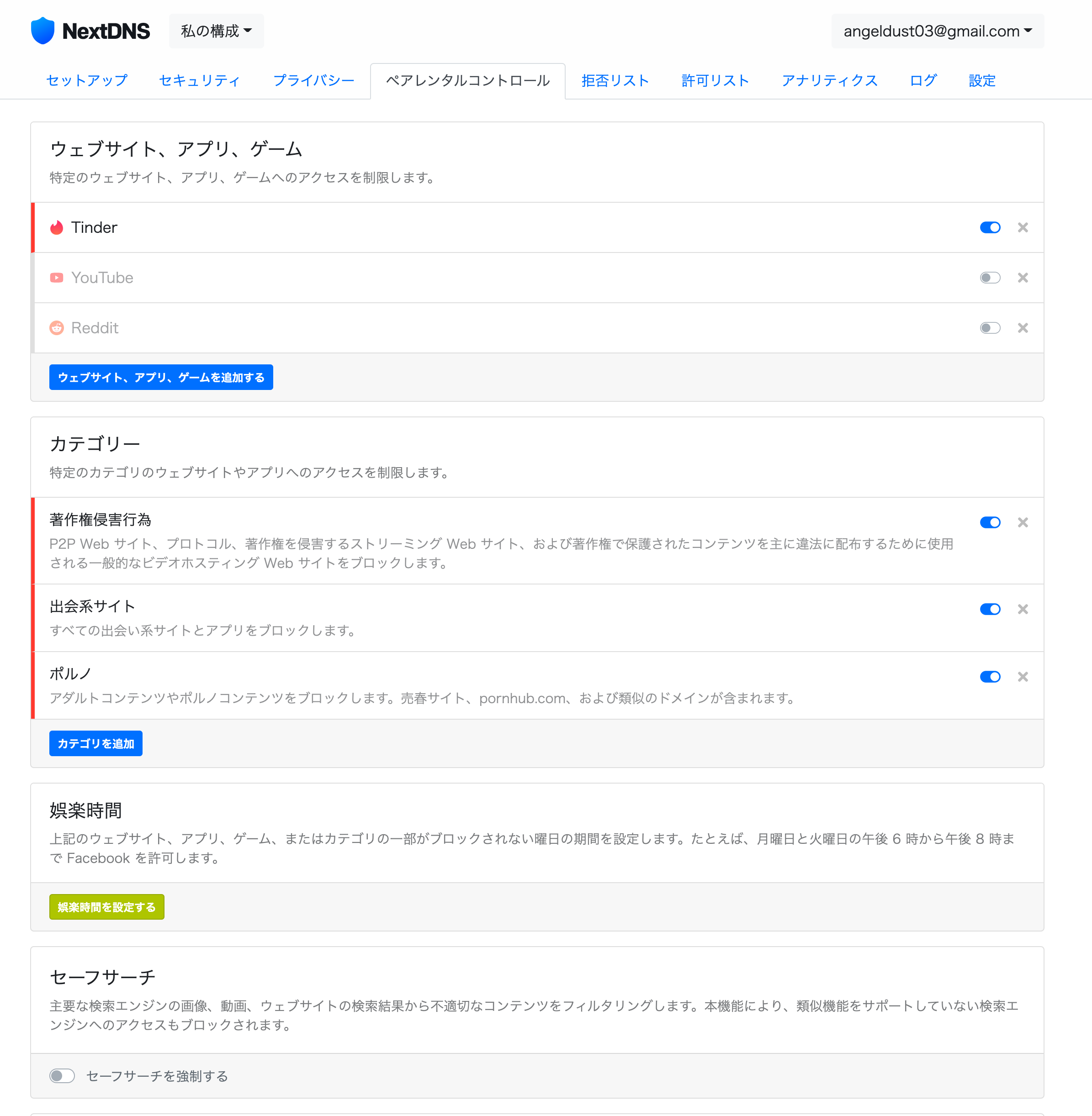マッチングサイト、SNS、アダルトサイト等、子供の判断能力が一定以上育つまで触れさせるとリスクであるサイトやサービスがたくさん存在し、子供の成長に合わせて両親の判断で許可したりブロックしたりを行いたかったのですが、世の中のペアレンタルコントロールは多くはパッケージ製品になっており細かくコントロールできません。