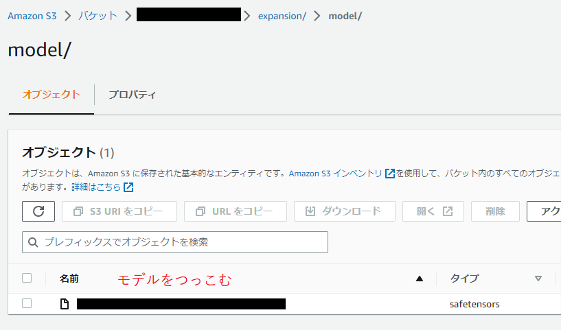 適当なバケットを作りそこにモデルやLora等アップロードし、syncコマンドでEC2インスタンスのボリュームへコピーします。
