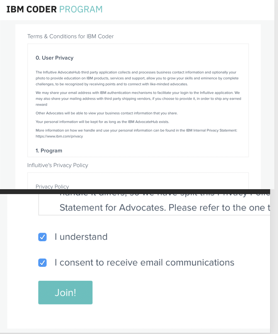 内容に問題なければ[I understand] と e-mailを希望する場合は[I consent to receive email communications]をチェックし、Join をクリックします。