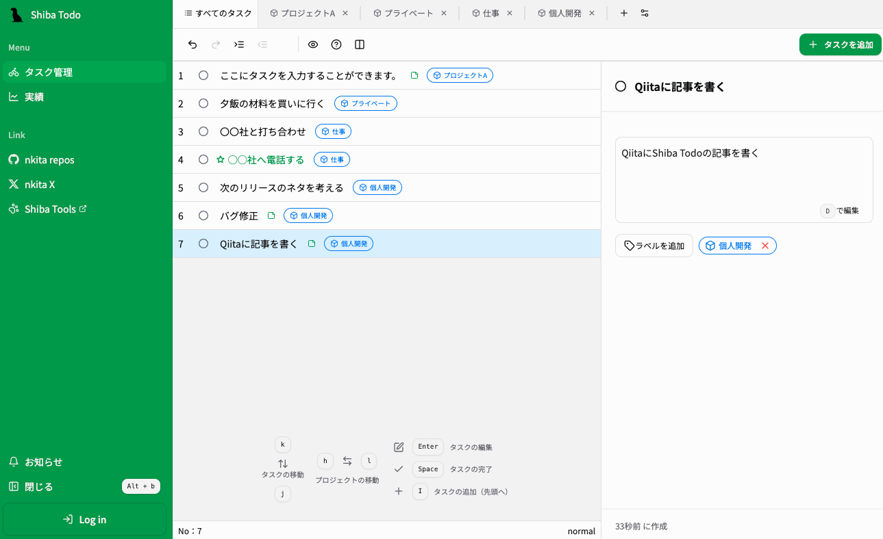 ShibaToDoは、Vimライクなキーボードショートカットを駆使して、最速でタスク管理ができるよう設計されたWebサービスのTodoアプリです。