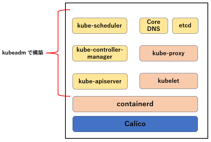 1台構成の Kubernetes クラスターのイメージ図は以下になります。