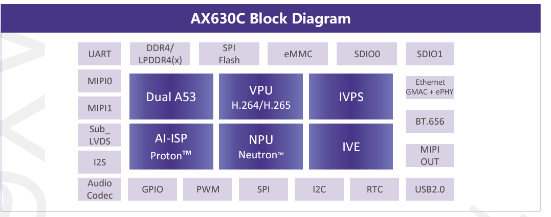 M5Stack Module-LLMには、AXERA-TECHのAX630CというSoCが載っています。AX630CにはデュアルコアのCortex-A53に加えて、NPUが搭載されています。