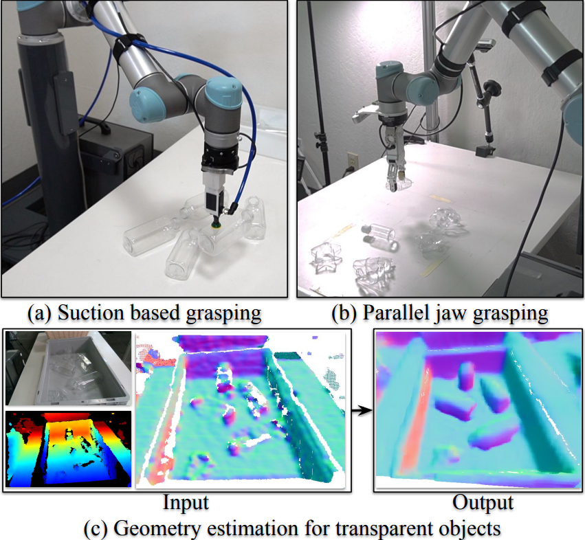 ClearGrasp: 3D Shape Estimation of Transparent Objects for Manipulation