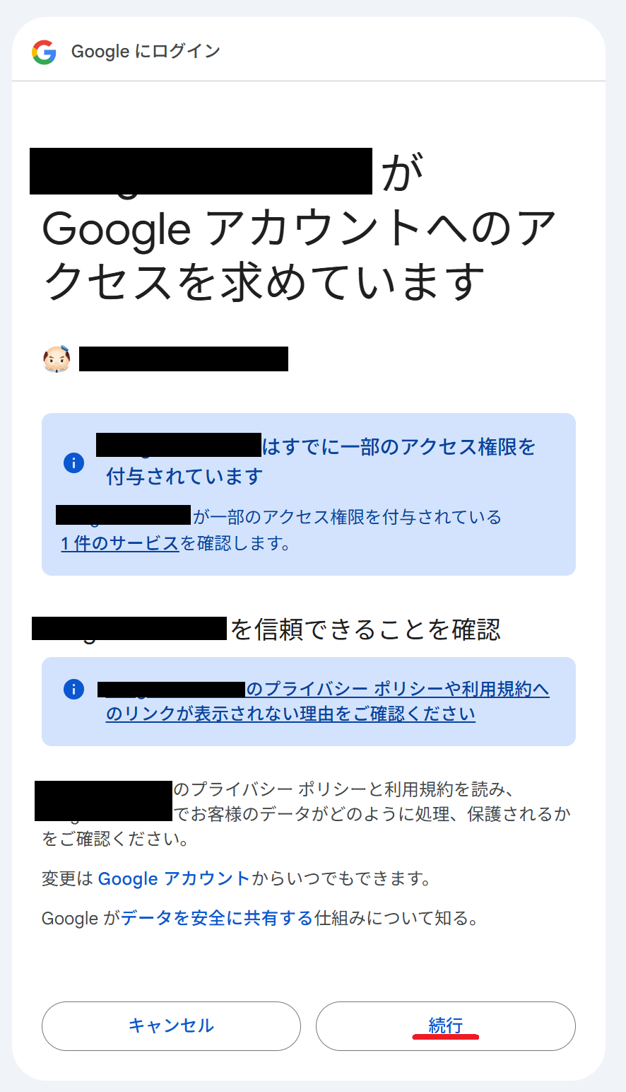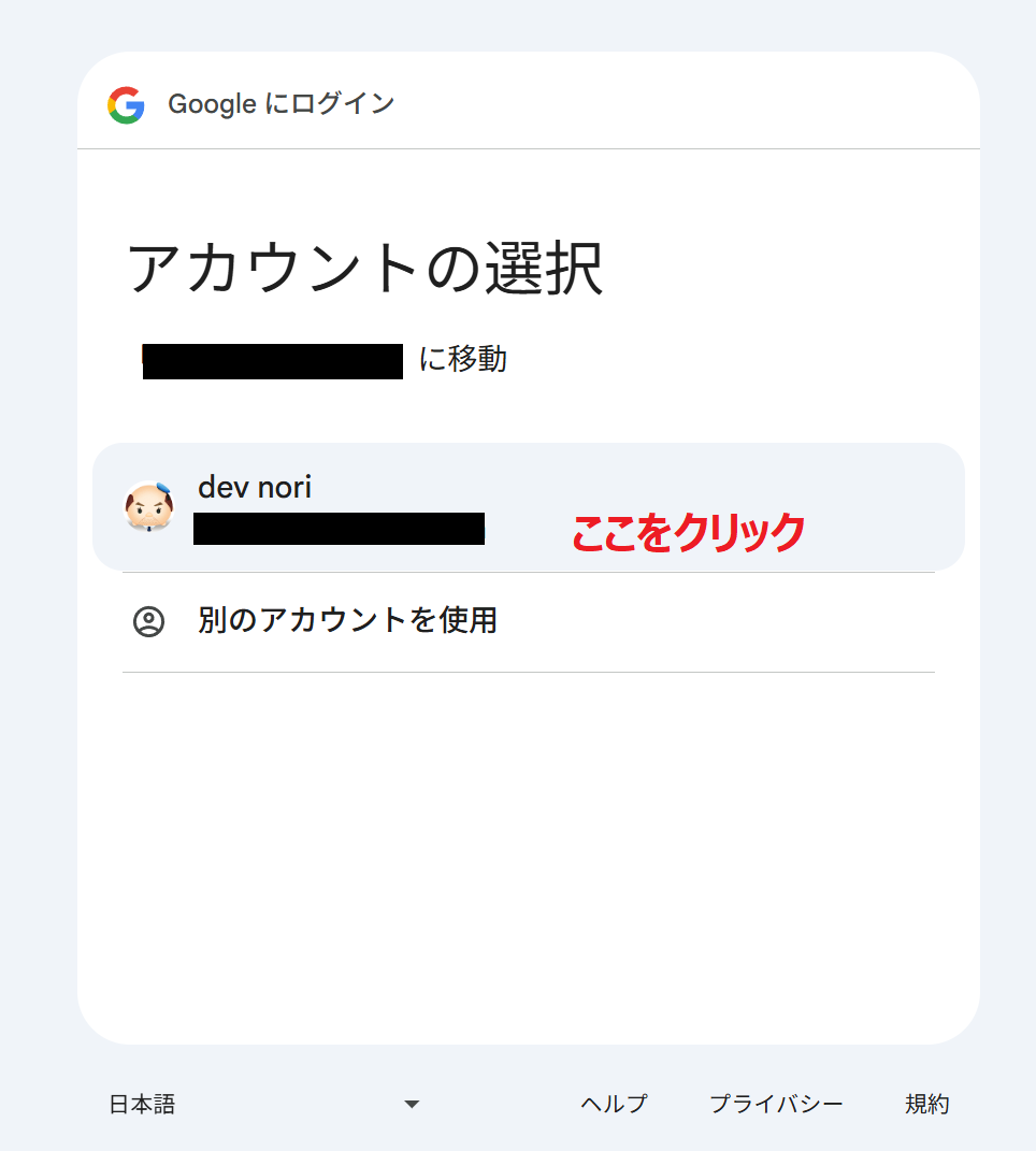3.ブラウザが以下のような画面になるので、自分のアカウントを選択