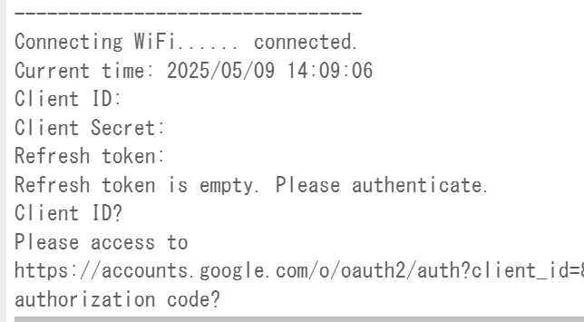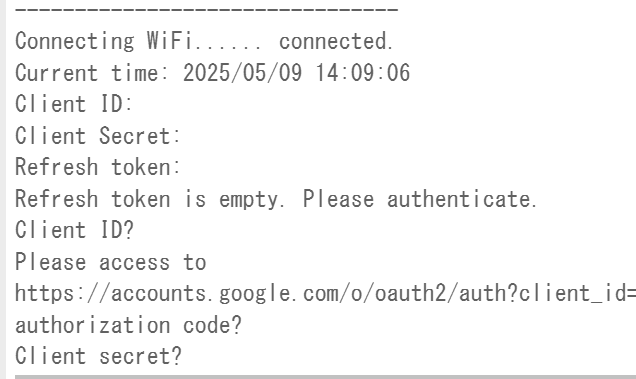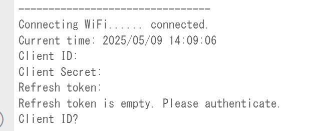 client_id、リフレッシュトークン などは SPIFFSに保存されるので次回以降は入力不要。
