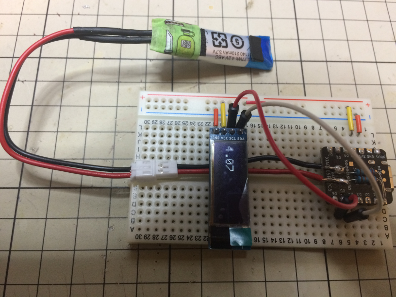 後で気付いたけど、このバッテリーは 1C ってことなので、210mA以上流してはいけません!!バッテリー壊れます!!ESP32はWiFi時に300mA超える場合がありますn