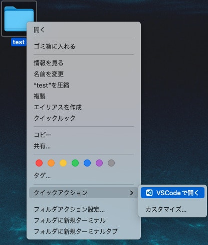 4. フォルダまたはファイルを右クリックからVisual Studio Codeを開く(macOSのみの設定)