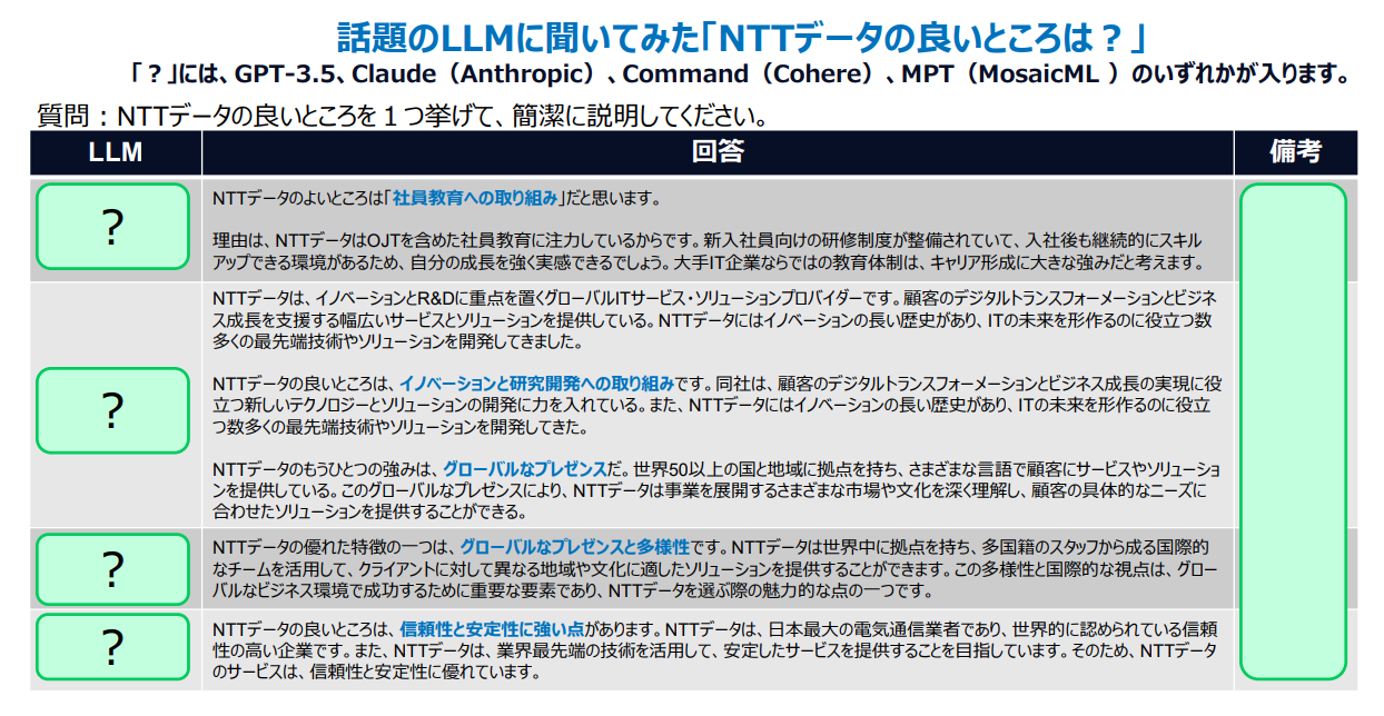 (OSSのモデルも含まれていますが、回答結果から見分けがつきますでしょうか?) -
