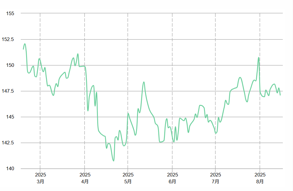 (25年3月~8月の為替の変動)