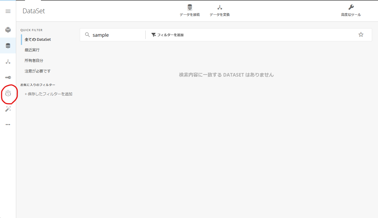 ヘッダーの「データ」タブを選択して、左サイドのタブに”強面のおじさん"のアイコンを選びます。