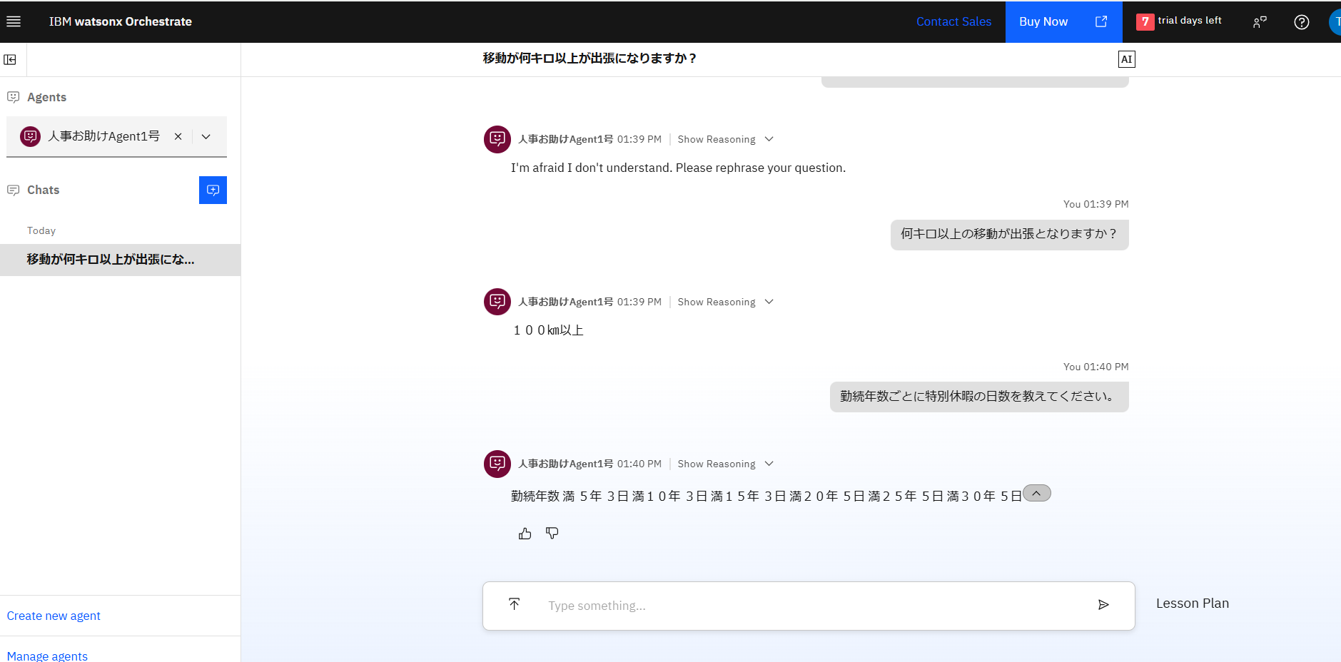 watsonx Orchestrate(以降wxO)でAgentを作ってみると最初の一歩はわりと簡単にでき、こんなやりとりがすぐできます。