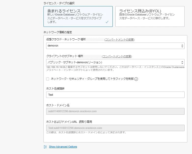 ・ホスト名接頭辞 : DBシステムのホスト名。サブネット内で一意である必要があります。