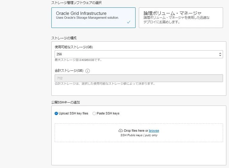 ・合計ストレージ(GB) : 上記使用可能なストレージから自動計算されます。データ格納領域に加えてリカバリ関連ファイルやOracleソフトウェアの領域の合計になります。