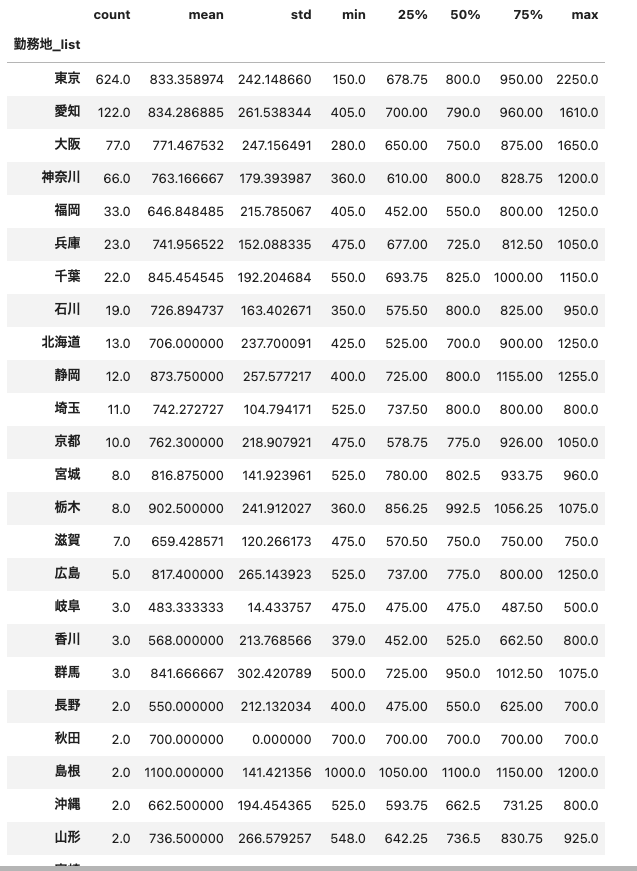 stats_by_pref = df_place.groupby("勤務地_list")["給料_list"].describe()