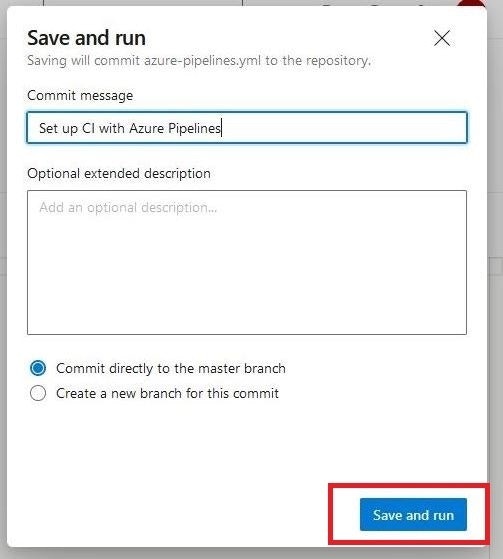 作成したYAMLファイルのpush方法(コミットメッセージとどのブランチにpushするか)を聞かれるので入力し、画面右下のSave and runを押下します。