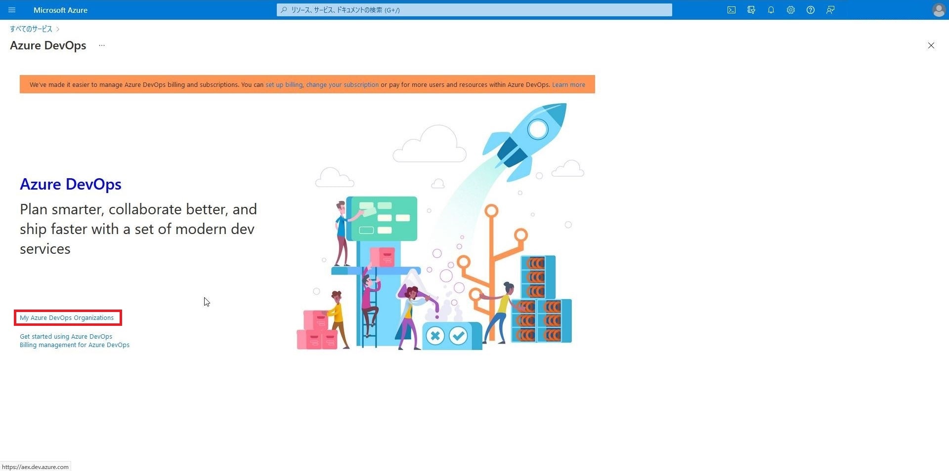 サービス一覧からAzure DevOps organizationsを選択します。