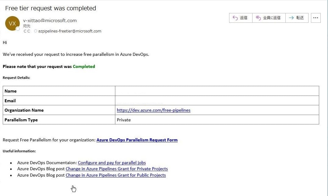 この変更の理由は無料付与のAzure Pipelines変更に記載されています。