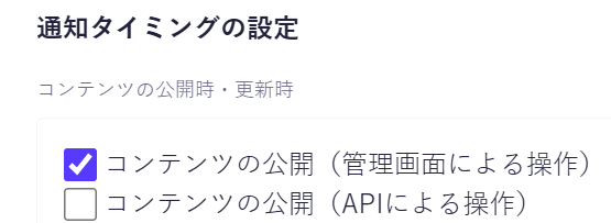 WebHookの通知タイミングはコンテンツの公開時とします。
