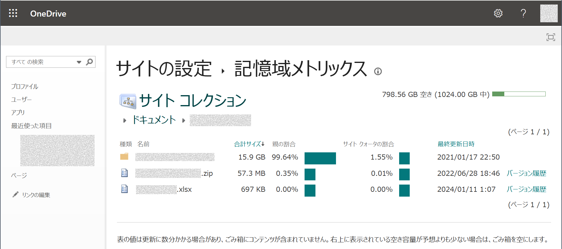 容量を食っている原因を探ろう 【記憶域メトリックス】