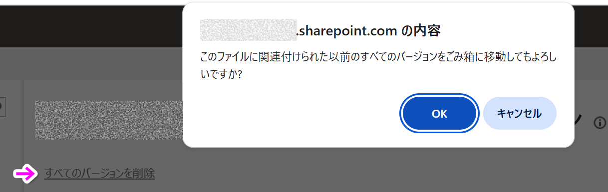 - 「すべてのバージョンを削除」をクリック